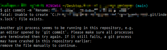 [Git] git fatal: Unable to create 'C:/file_path/.git/index.lock': File exists. 오류 해결하기! 본문